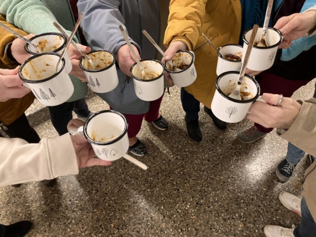 Für eine weiter Überraschung habe ich dann nach der Stunde gesorgt. Als Merci hat Yves für Alle Chili corn carne gekocht und so konnten die doch etwas auf den Felgen aus der Dusche kommenden Cowgirls neue Energie für das wohlverdiente Wochenende tanken.