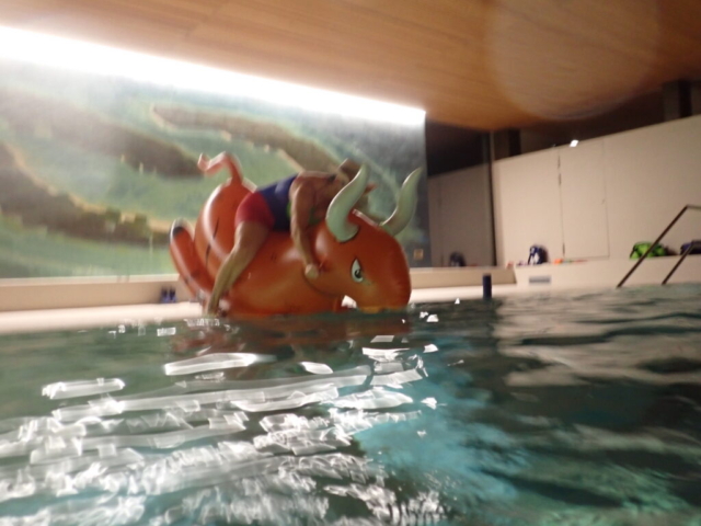 Natürlich wollte den Bullen niemand reiten, also musste ich wohl oder übel ran - doch das muss wahrscheinlich noch etwas geübt werden...