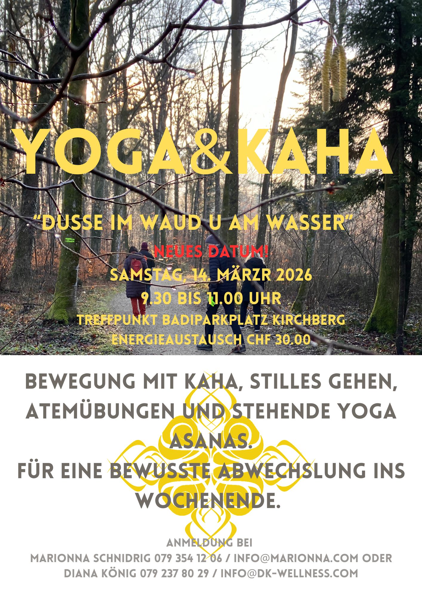 Im März 2026 geht die Erlebnisreise mit Kaha & Yoga in Kirchbergh im Wald und an der Emme in der Natur weiter.